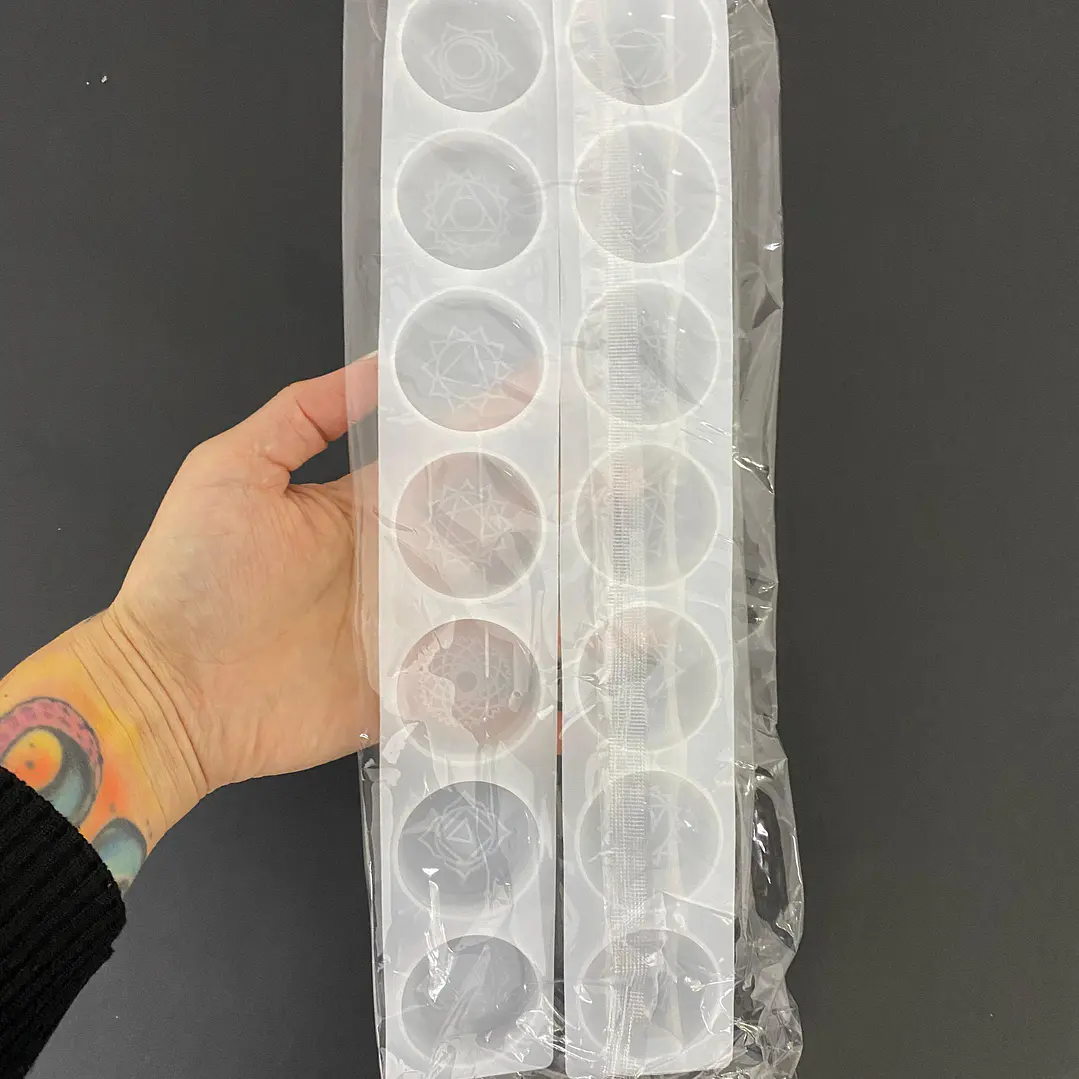 Molde de silicona 7 Chakras, dos piezas, ovalados y rectos.